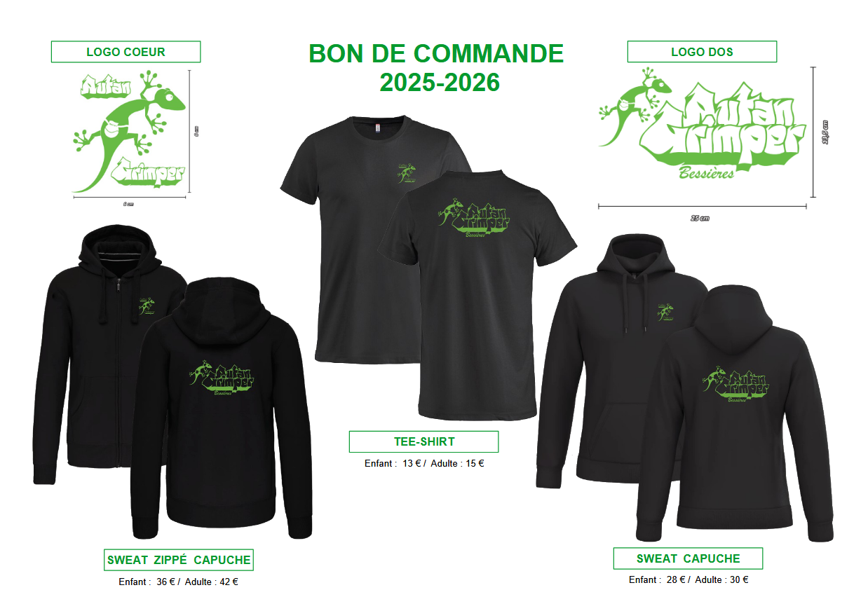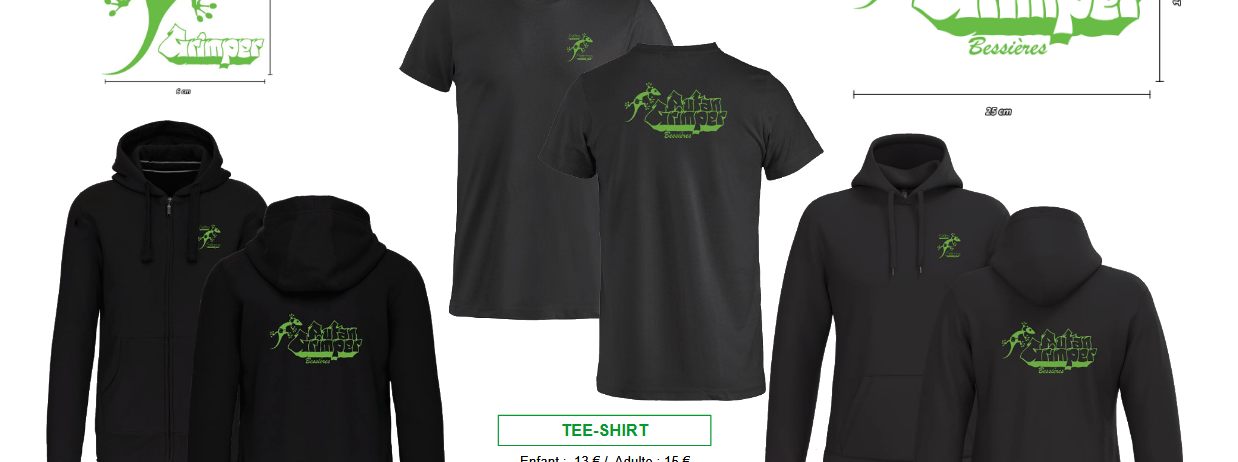 Tous les vêtements seront floqués avec le Logo du club « Autan Grimper » en vert fluo (cœur et dos )