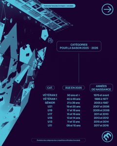 Voir le tableau disponible sur notre site « Compétition/ catégories. Cette « étiquette » la catégorie